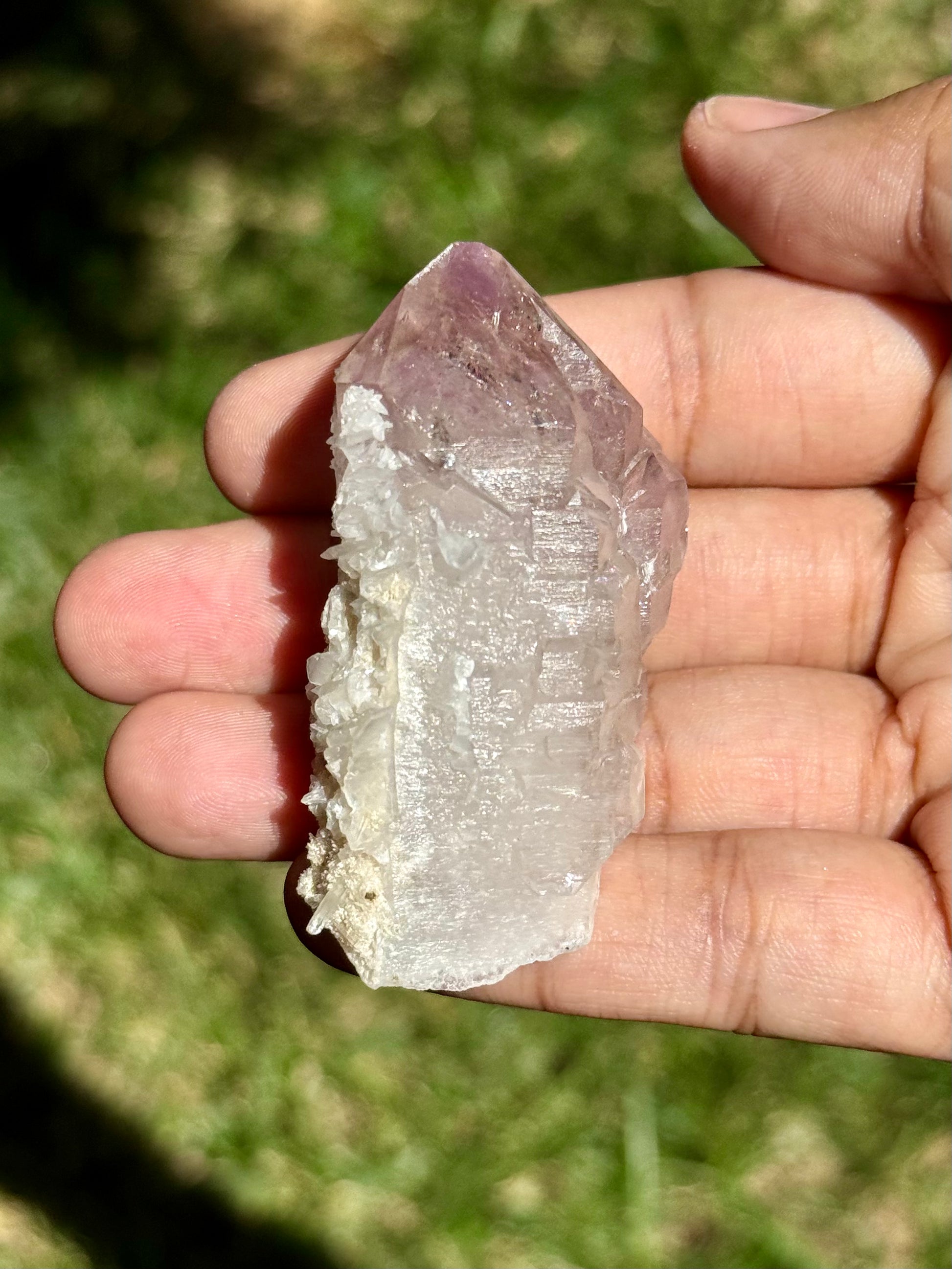 Here is quite a structural amethyst piece with calcite adorning the side of it!