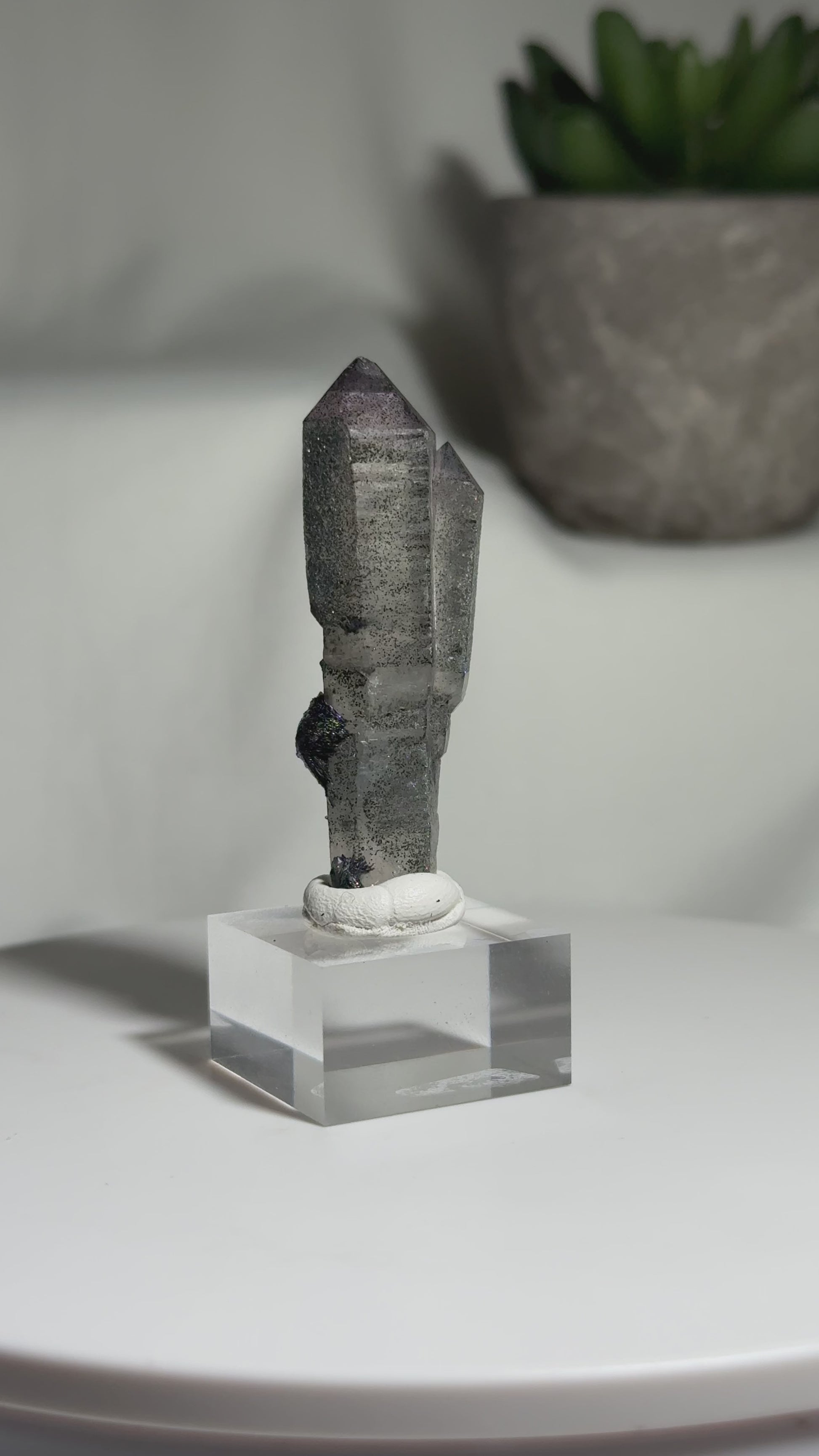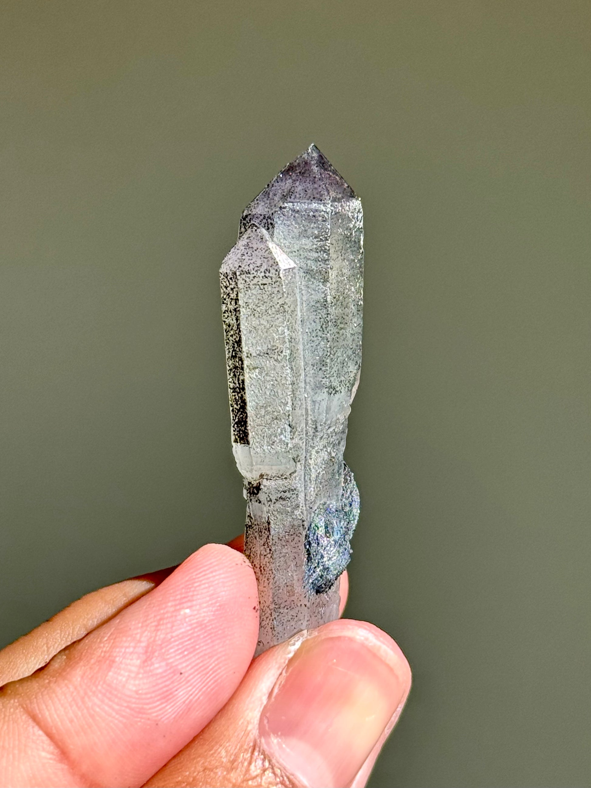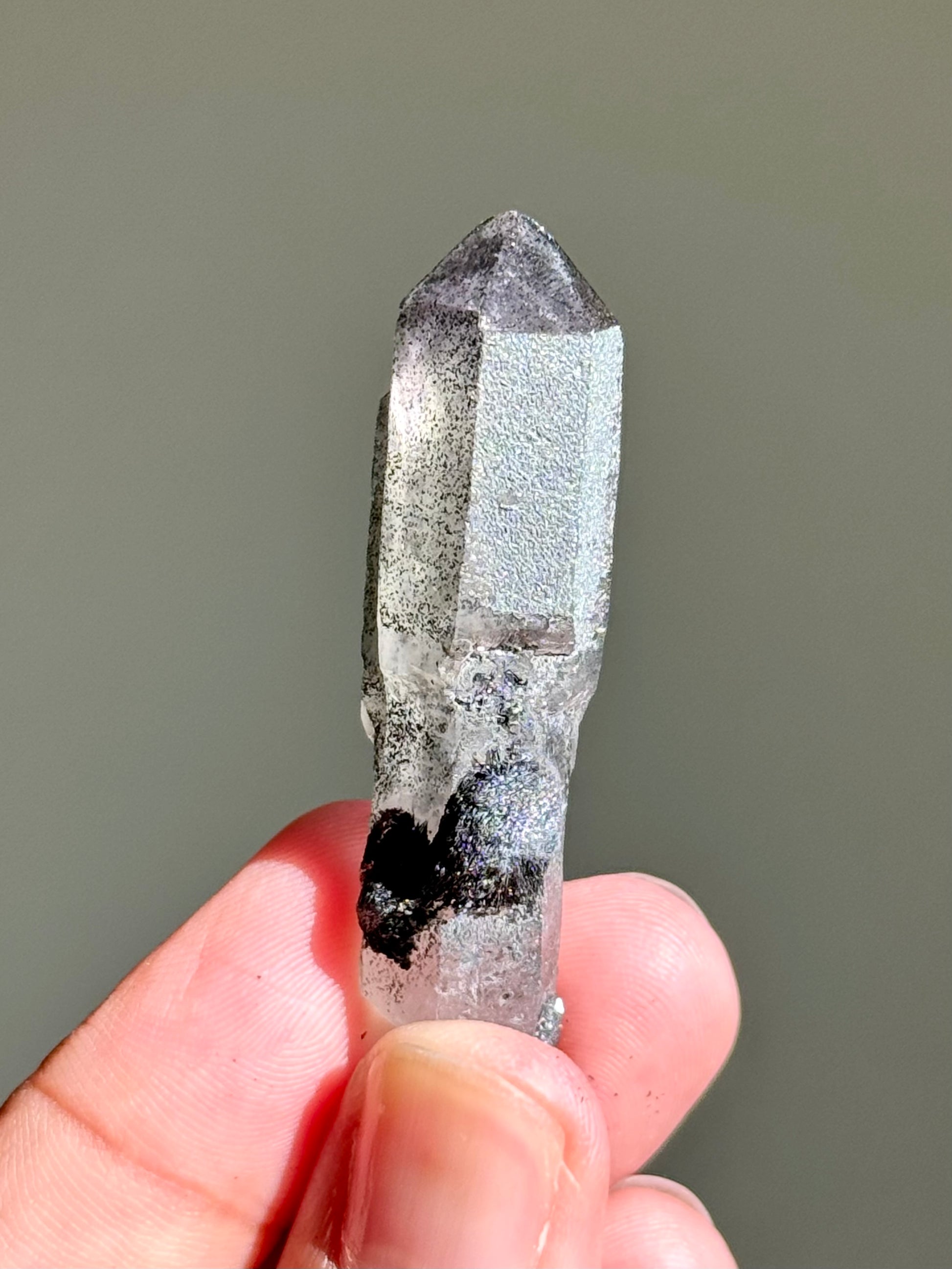 An amethyst with hematite. I like to call this specific find 月亮紫晶 or moon song amethyst for their dark & mysterious beauty.