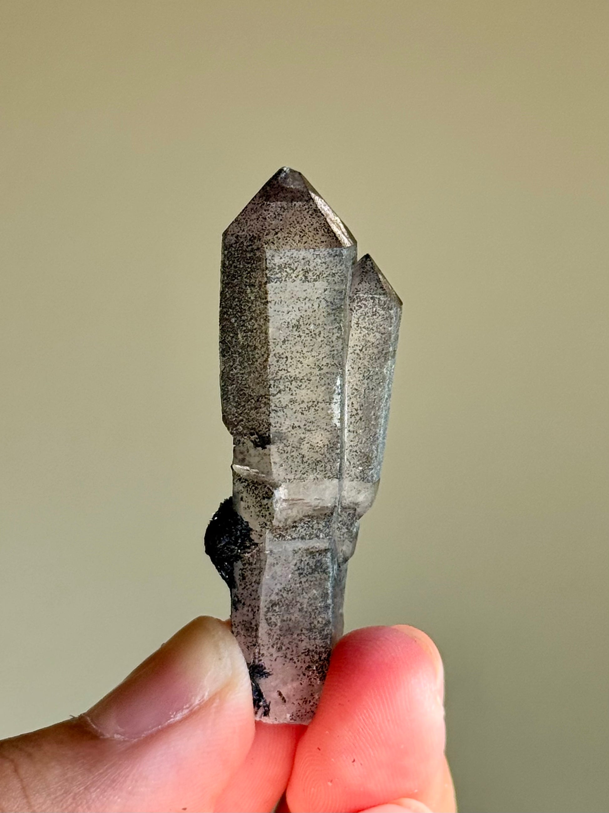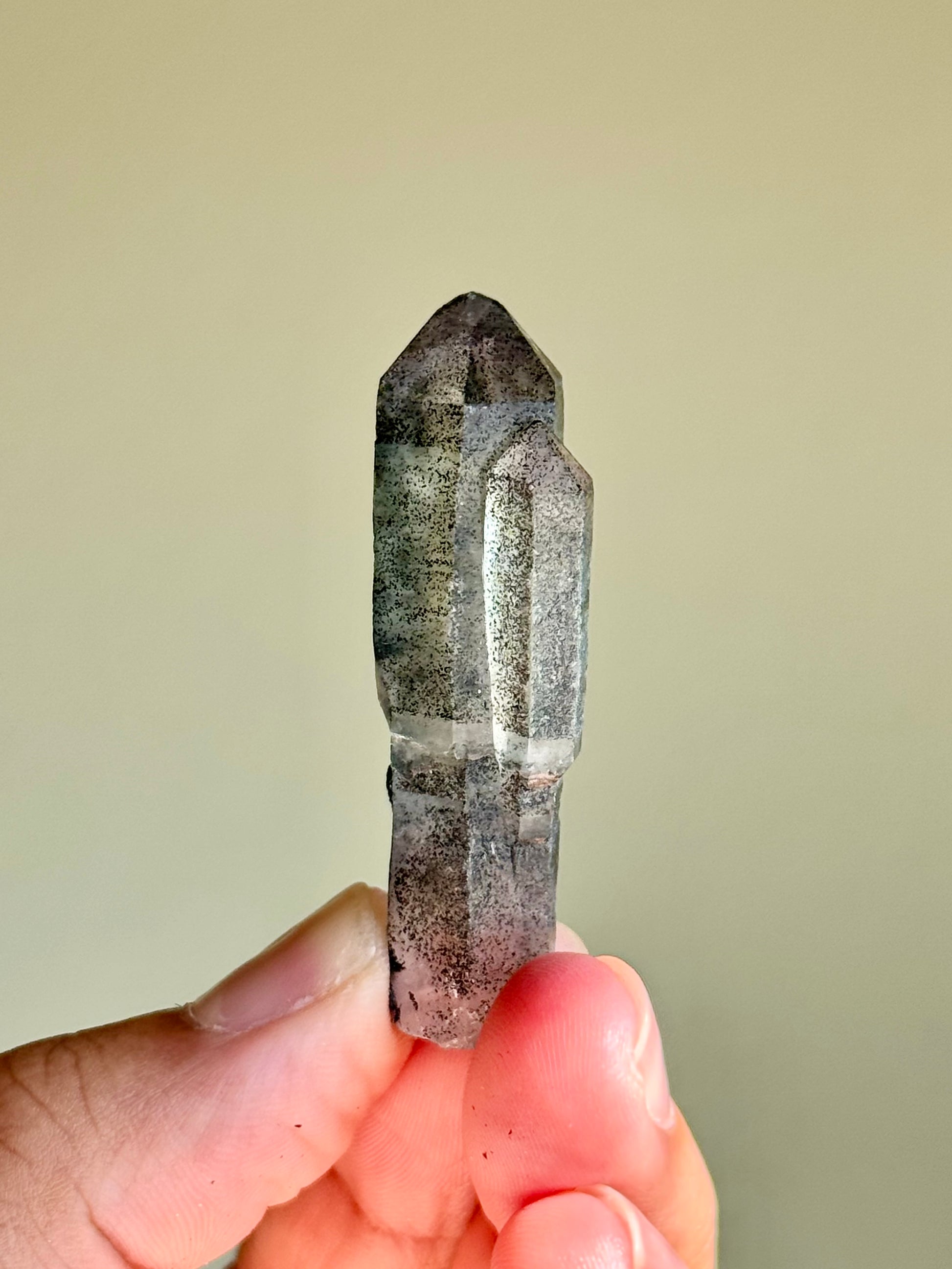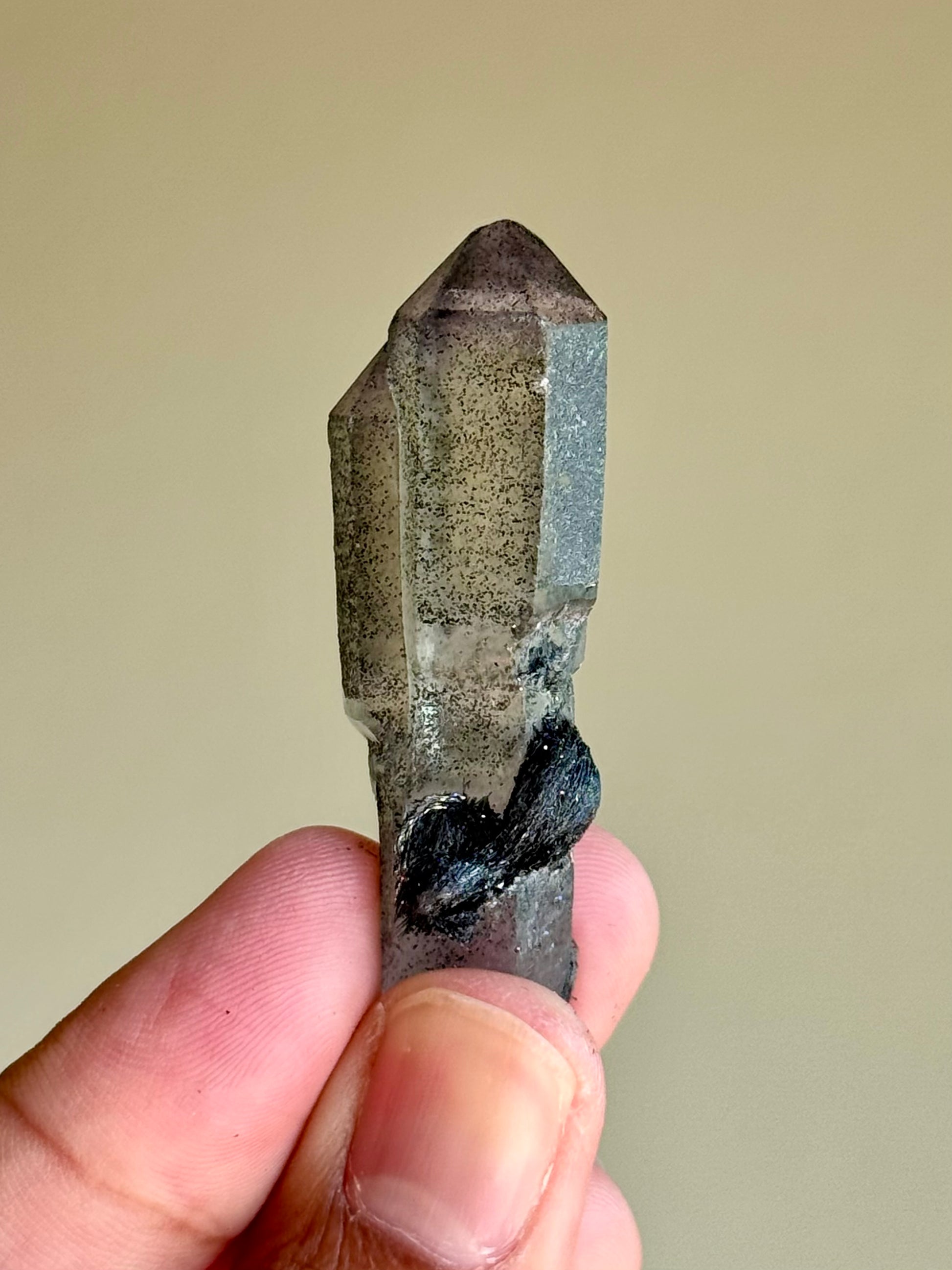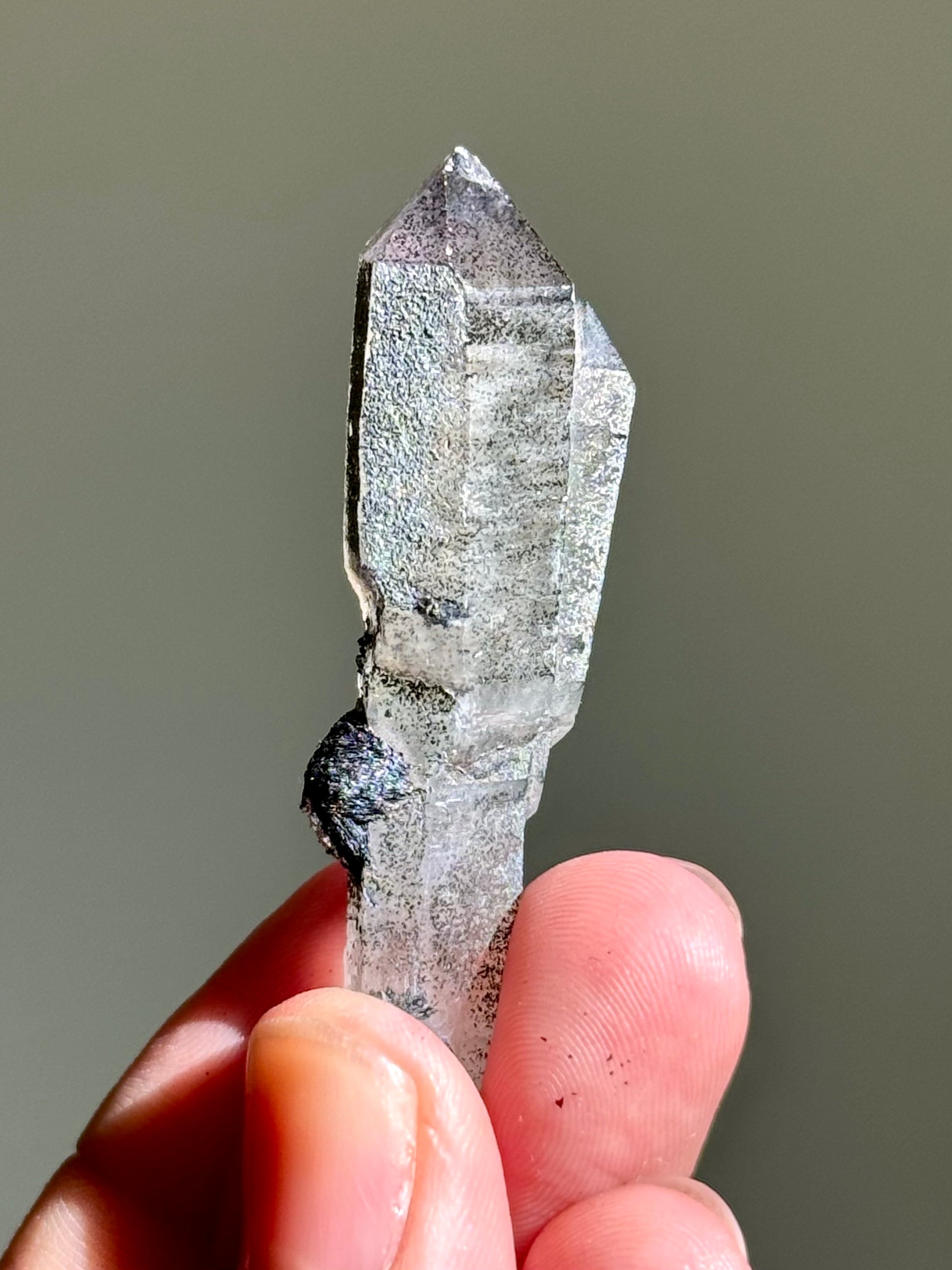 An amethyst with hematite. I like to call this specific find 月亮紫晶 or moon song amethyst for their dark & mysterious beauty.
