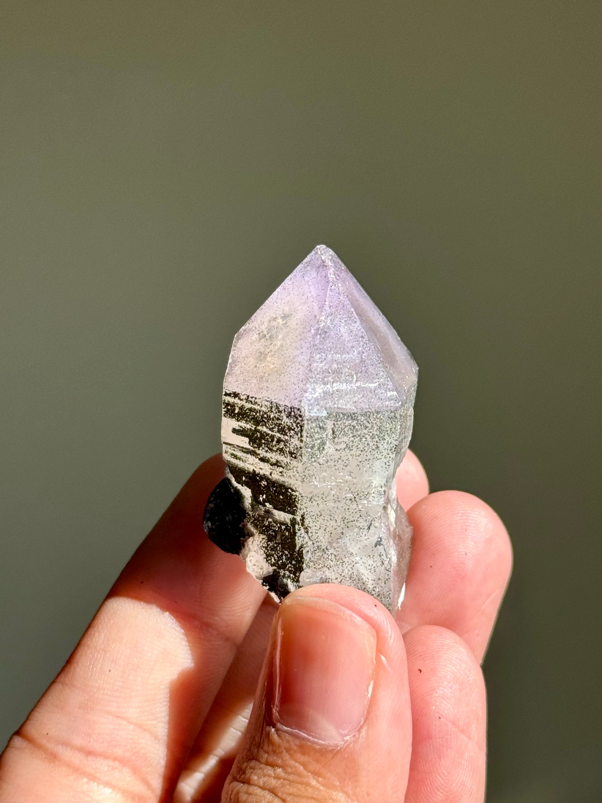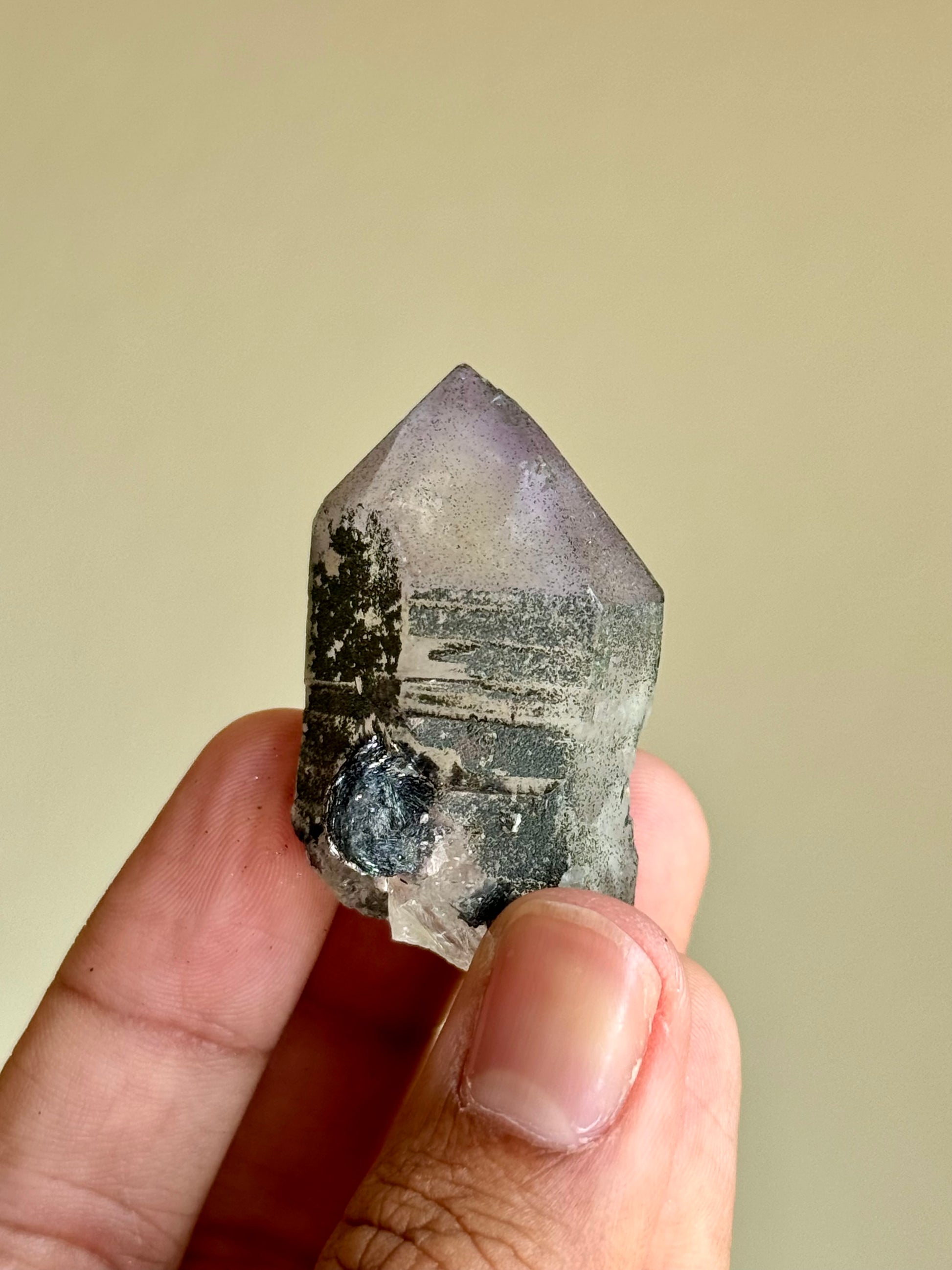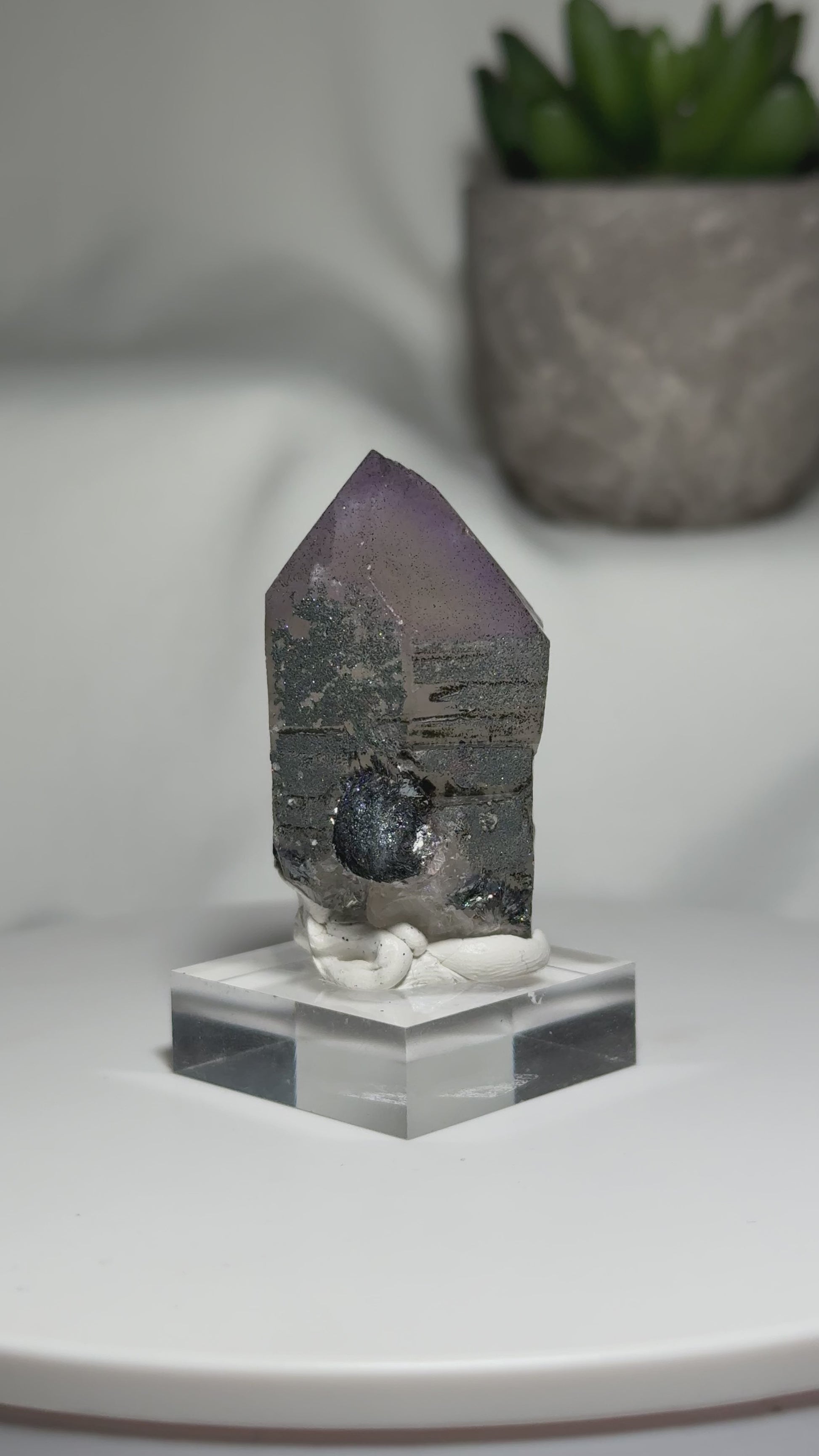 An amethyst with hematite. I like to call this specific find 月亮紫晶 or moon song amethyst for their dark & mysterious beauty.