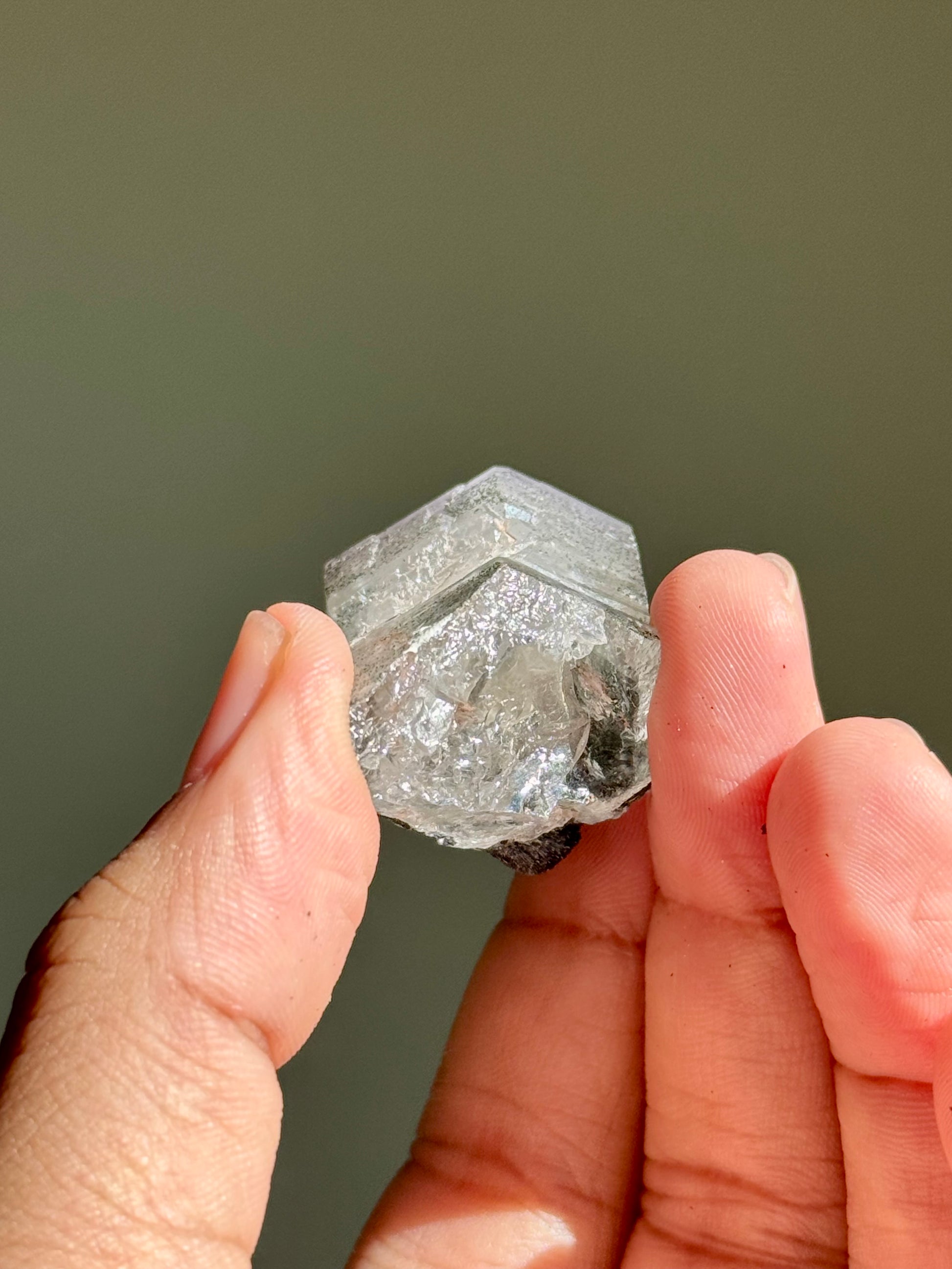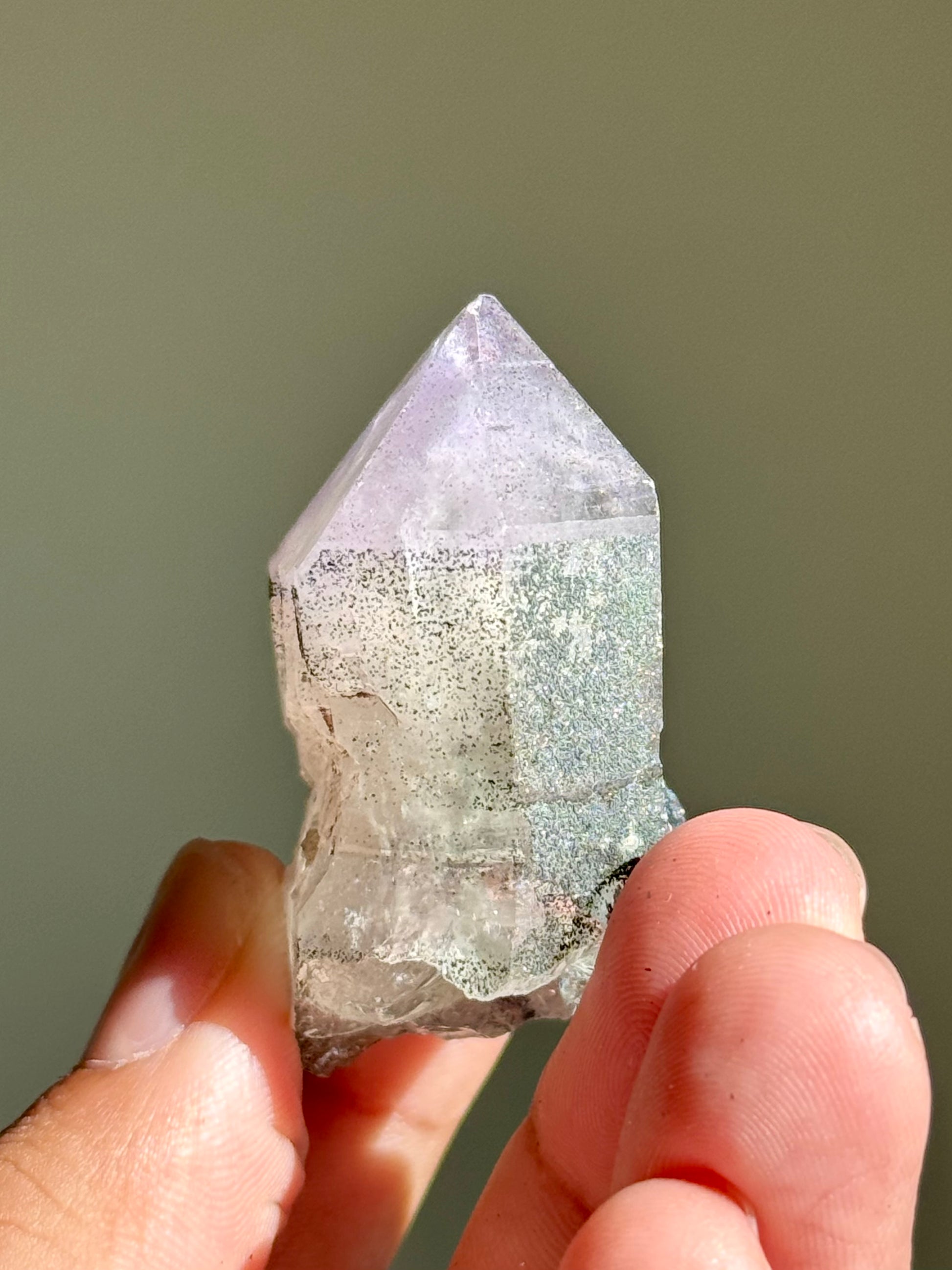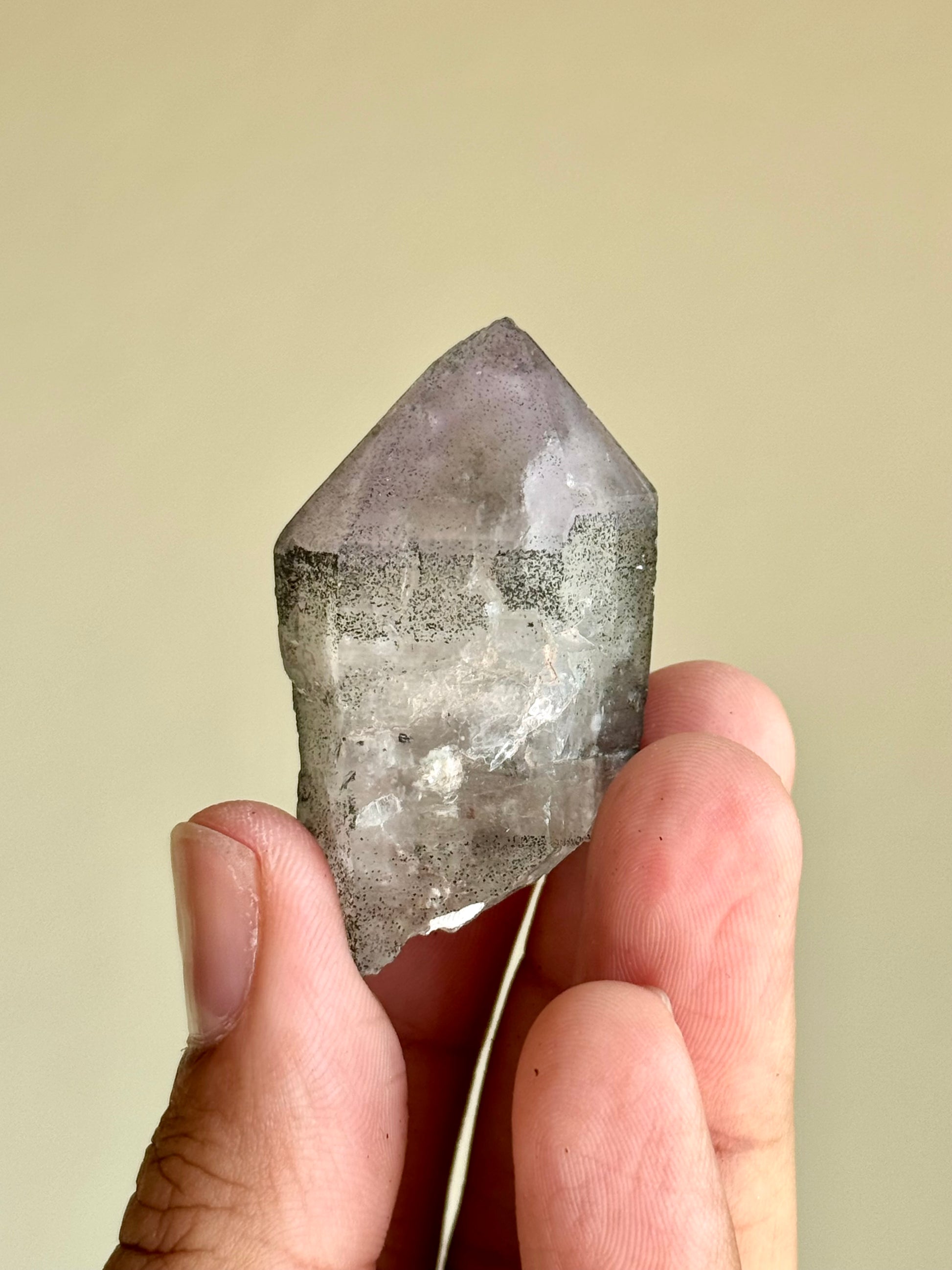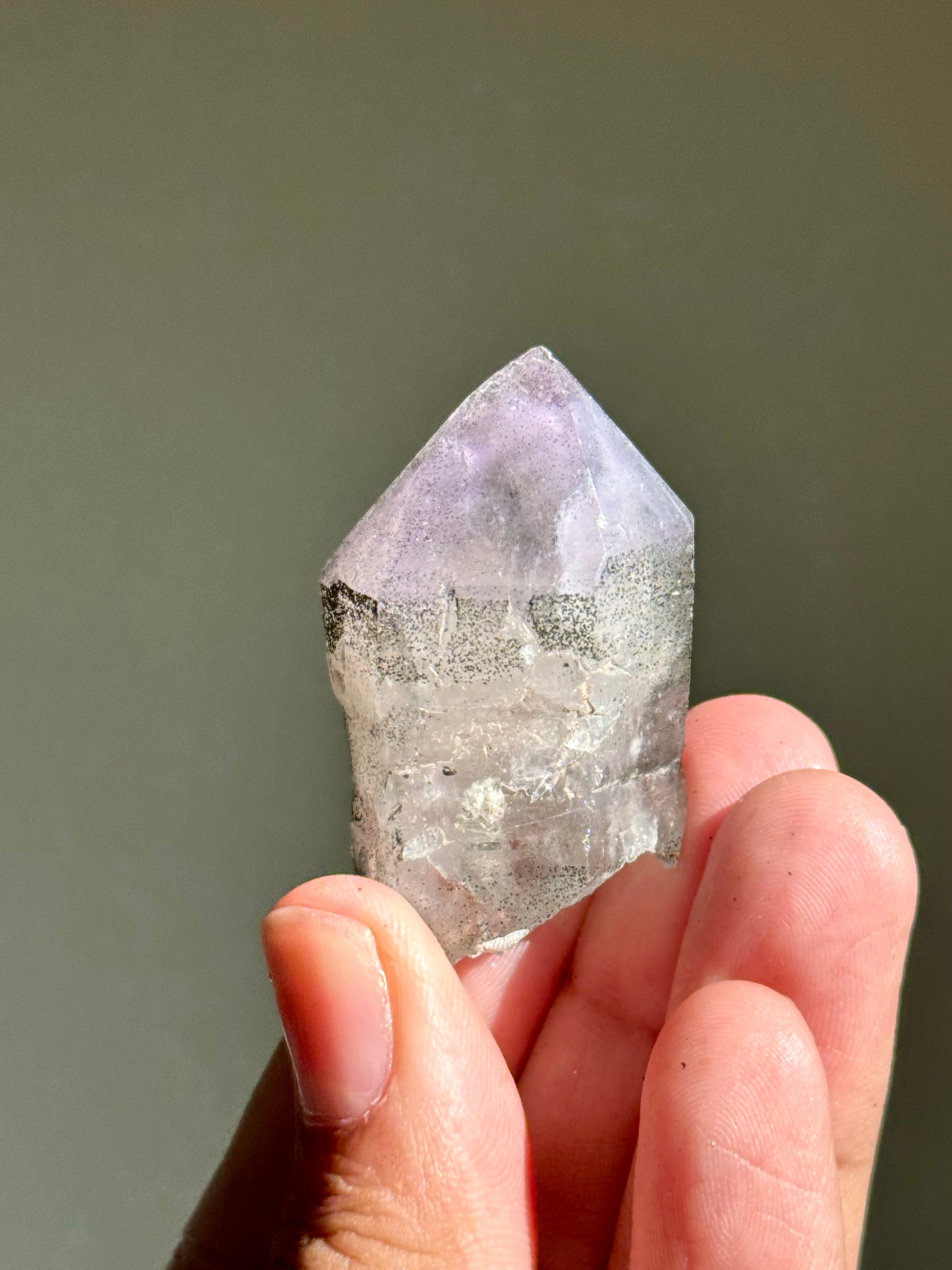 An amethyst with hematite. I like to call this specific find 月亮紫晶 or moon song amethyst for their dark & mysterious beauty.