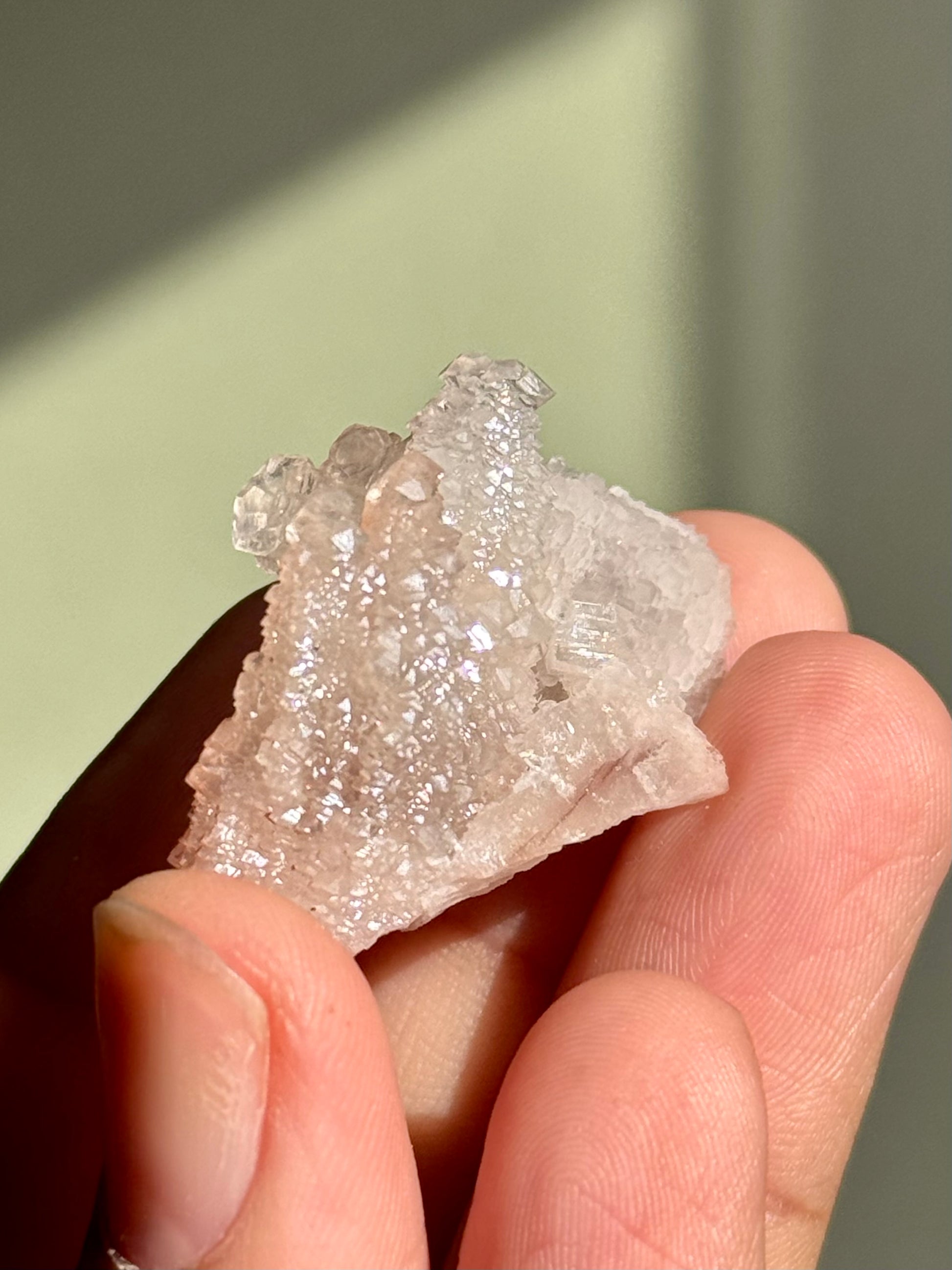 A clear, stacked pagoda calcite cluster.
