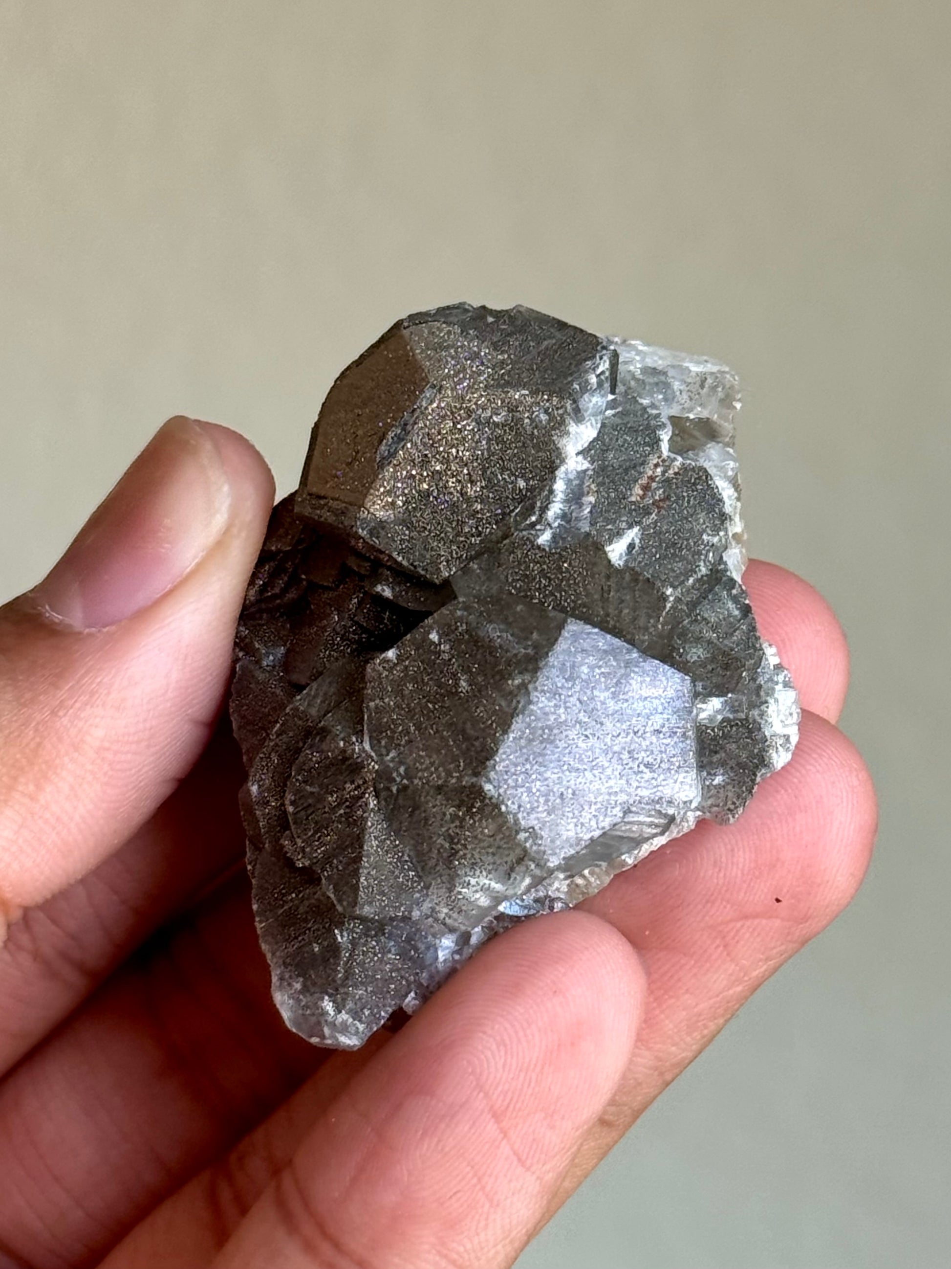 A calcite cluster with pyrite dusting concentrated onto one of the main structures, giving it some focal flair.