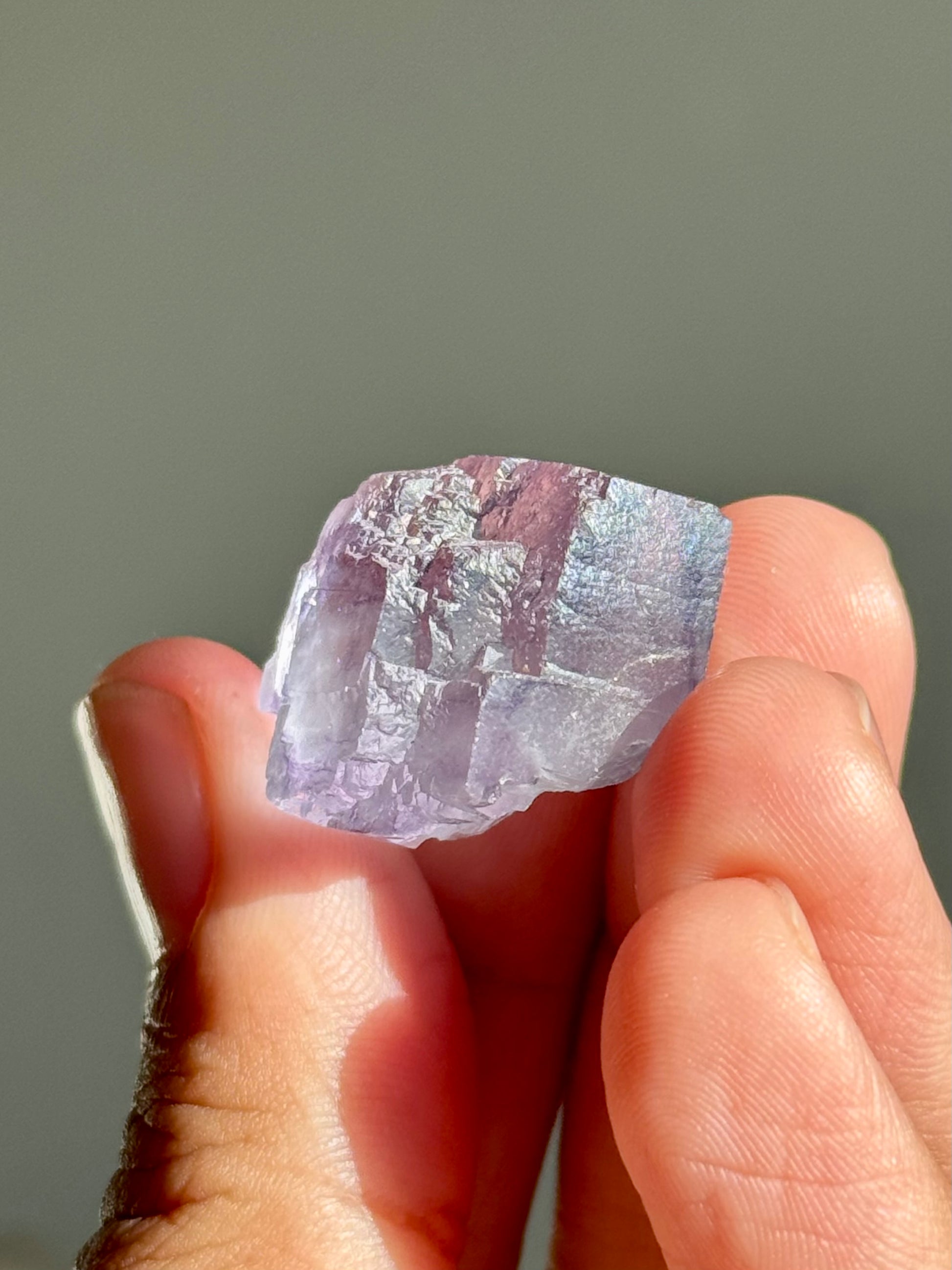 A cute, periwinkle fluorite with zoning that’s reminiscent of an etch-a-sketch.