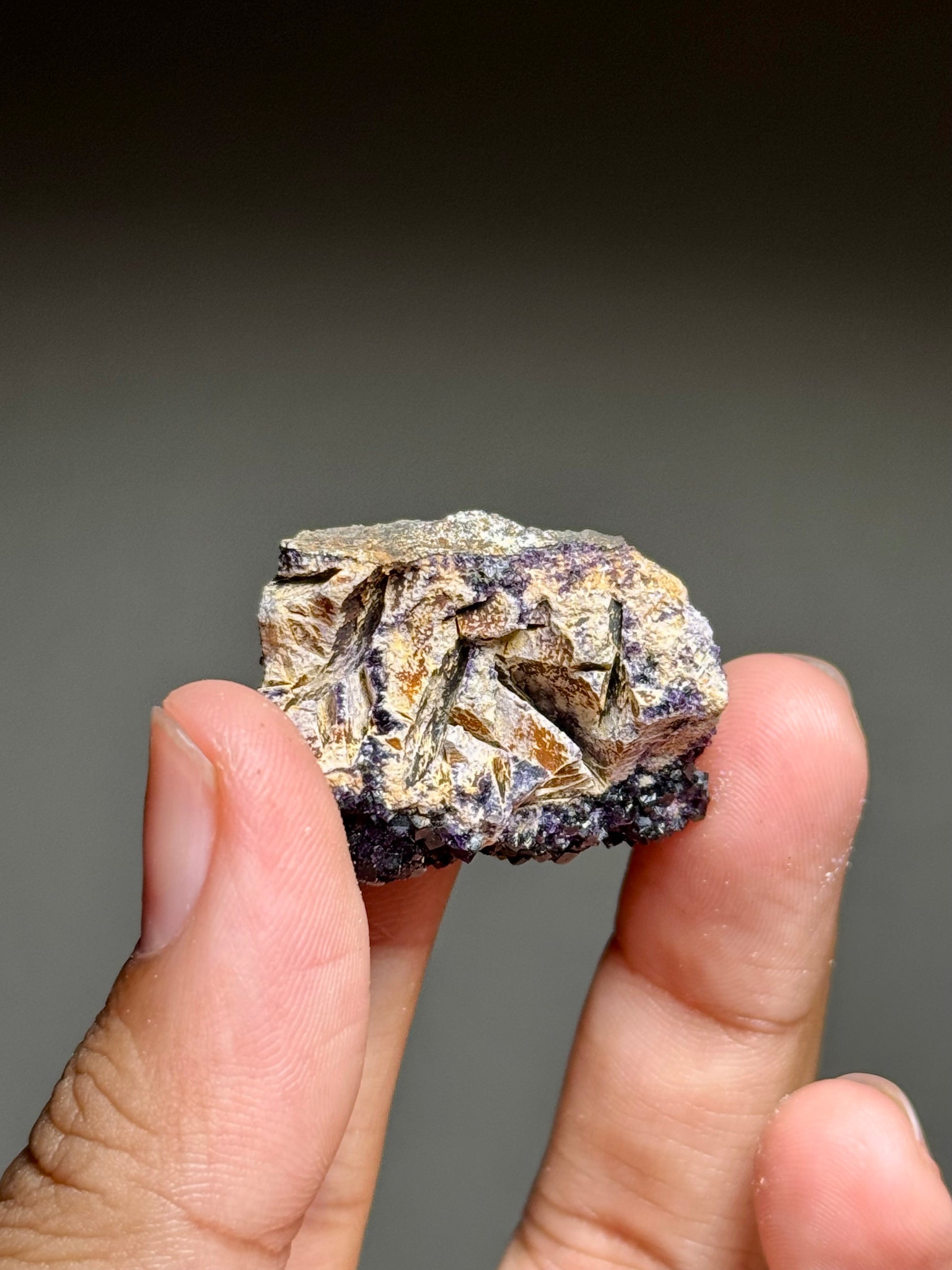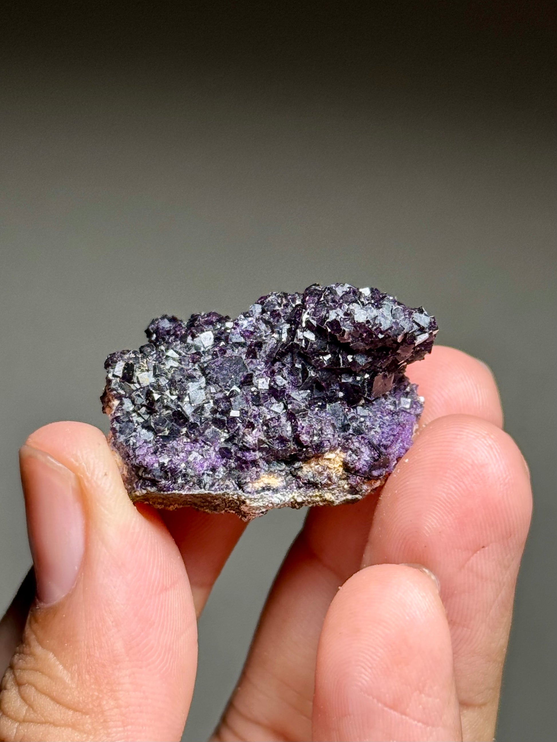 A midnight purple fluorite cluster that hardly allows light to pass through.