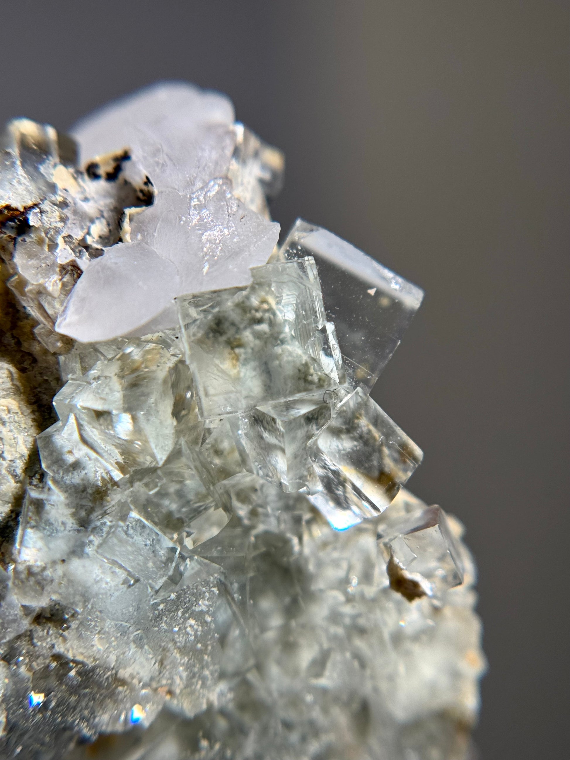 This fluorite variety from Xianghualing exhibits glass-like clarity, with its coloring falling somewhere between a light, refreshing seafoam-green to almost colorless in some areas. The yellow matrix and dendritic patterns across the piece lend a beautiful touch of additional color and pazazz.