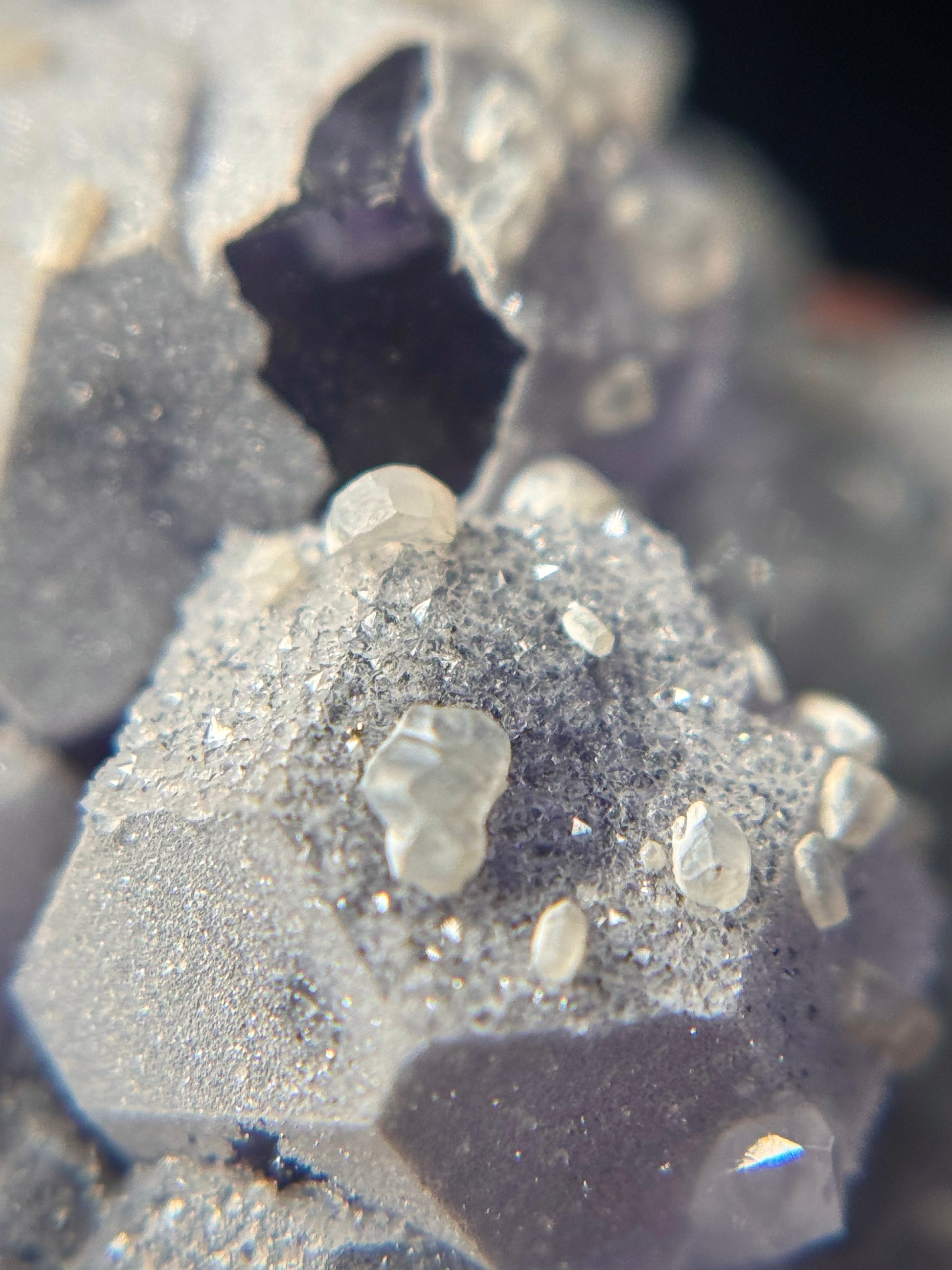 Here is a “tanzanite” fluorite from Fujian, China! This fluorite cluster his coated with a fine sugar quartz druse and has a quartz cluster cutely hugging its side. Quite an elegant piece!
