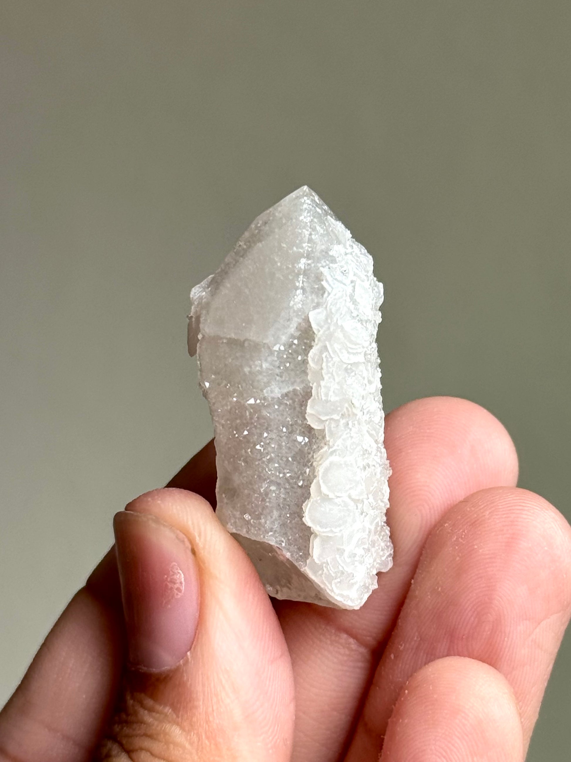 The stark white calcite against the off white quartz give a very clean and put-together image, while the secondary quartz growth gives us that pizazz we know and love Inner Mongolian specimens for.