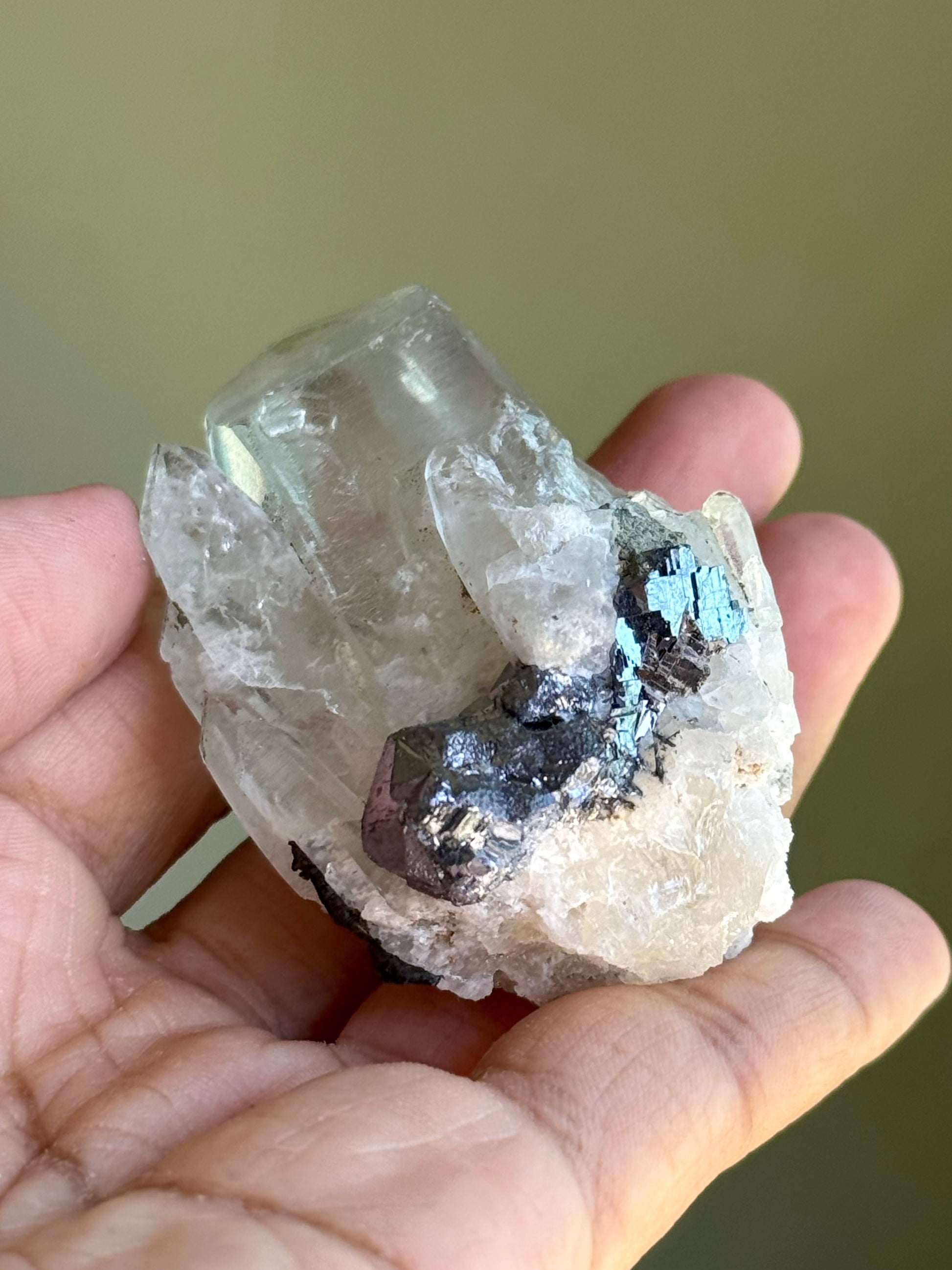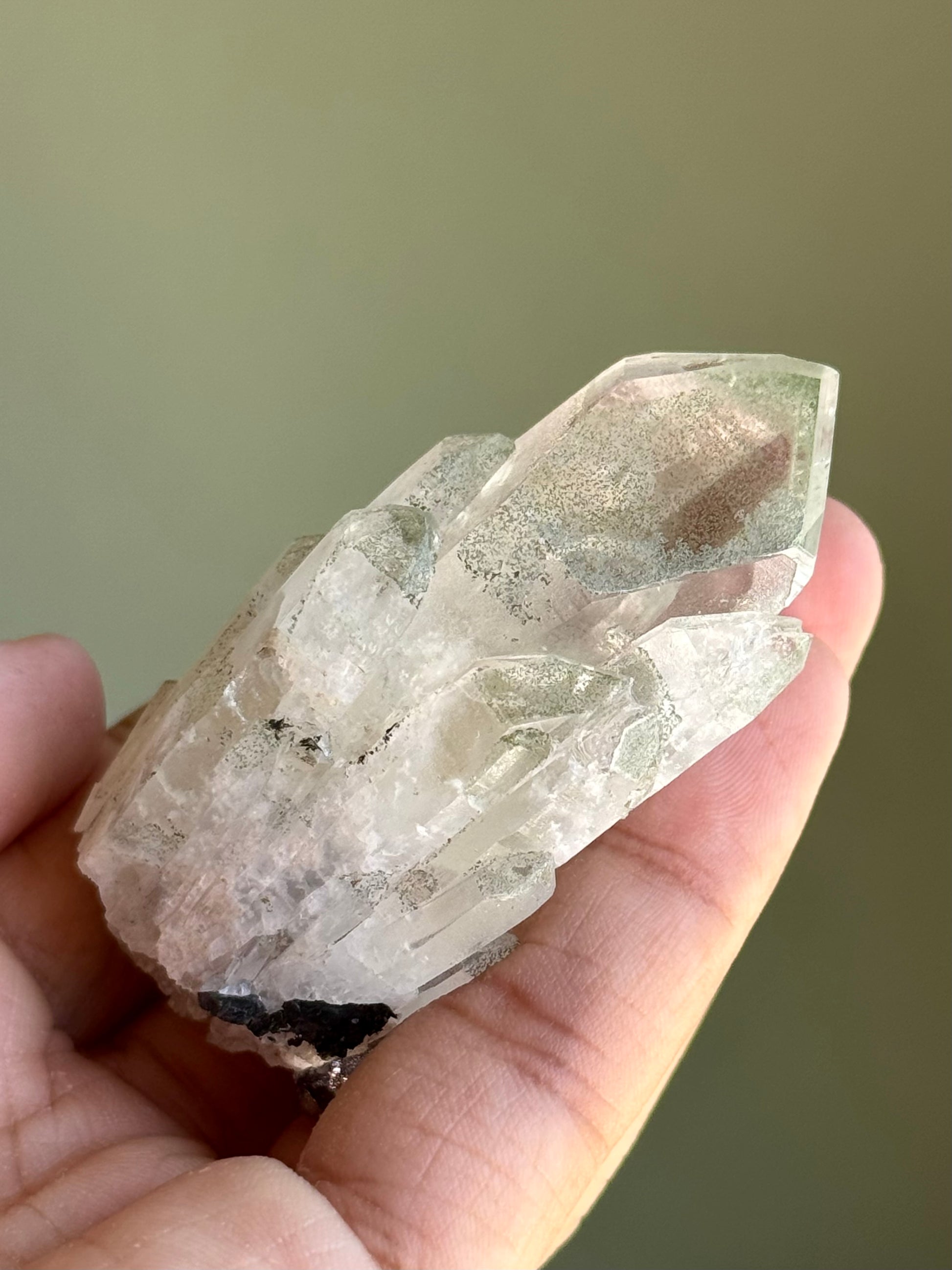 Artichoke formation quartz with chlorite phantoms and galena at the base. I’m told by my source that this material is uncommon for this locale, and as a quartz collector I just had to bring them in and offer them!