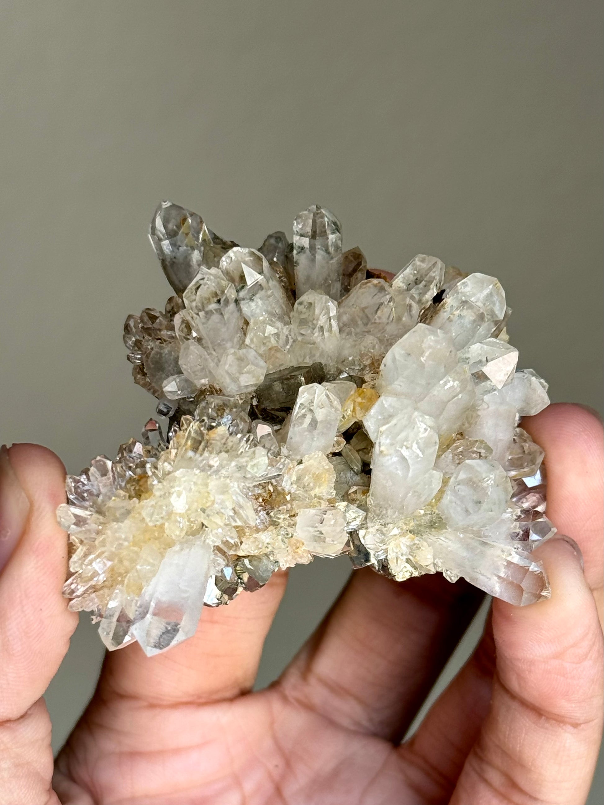 A very dynamic quartz cluster with pyrite. Comparable to the entire find of this specific material, the aesthetics of this piece have reached a level I haven’t seen too often.