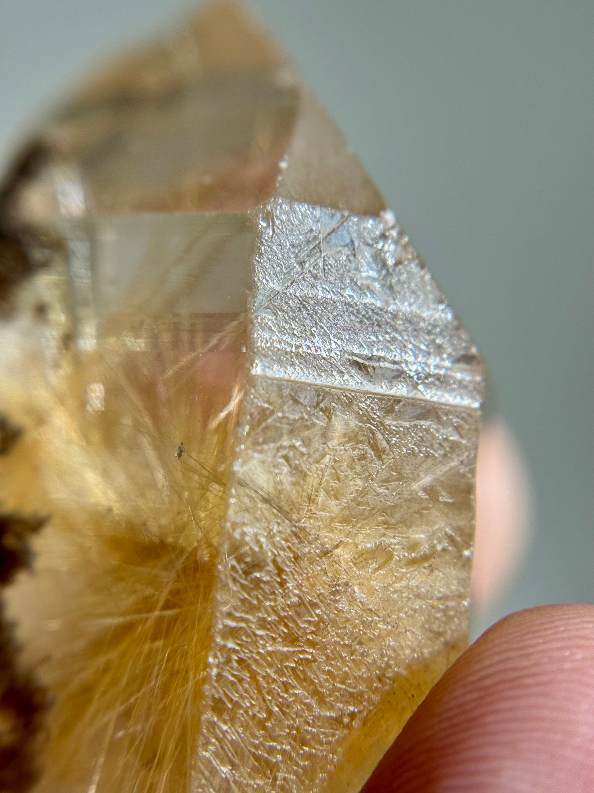 A small quartz point with rutile inclusions.