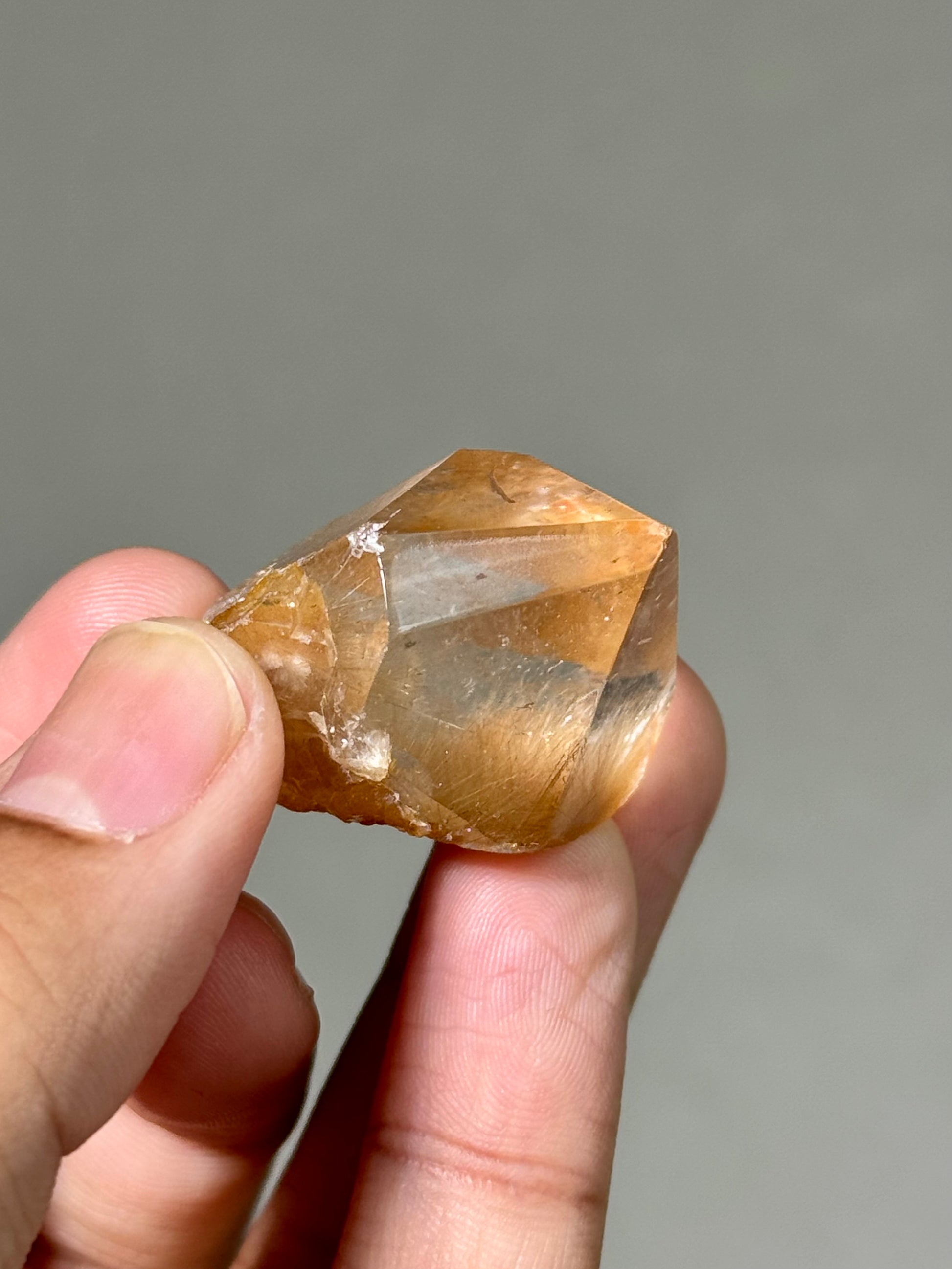 A small, semi-polished Himalayan quartz piece with rutile inclusions.