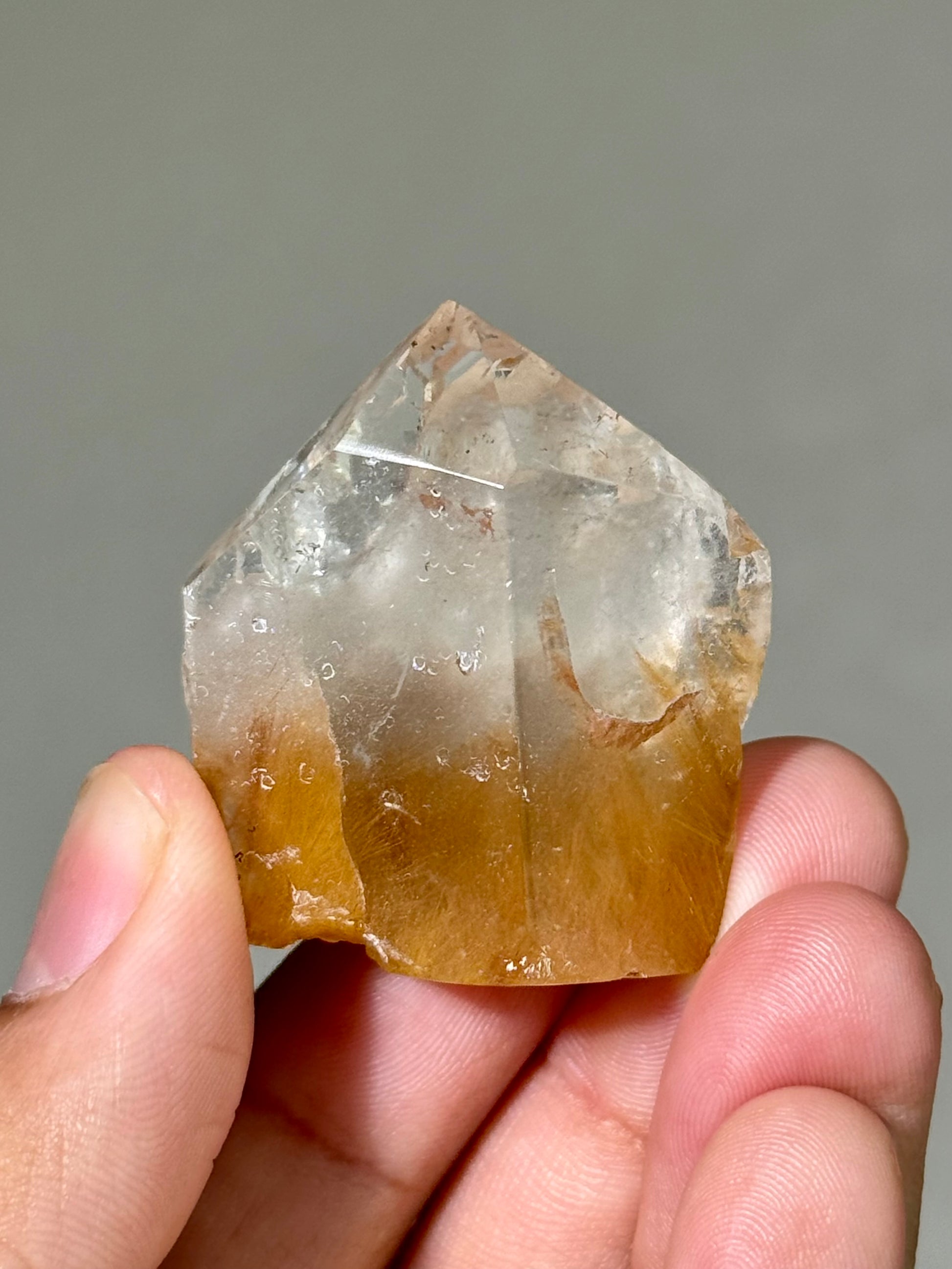A small, semi-polished Himalayan quartz piece with rutile inclusions.
