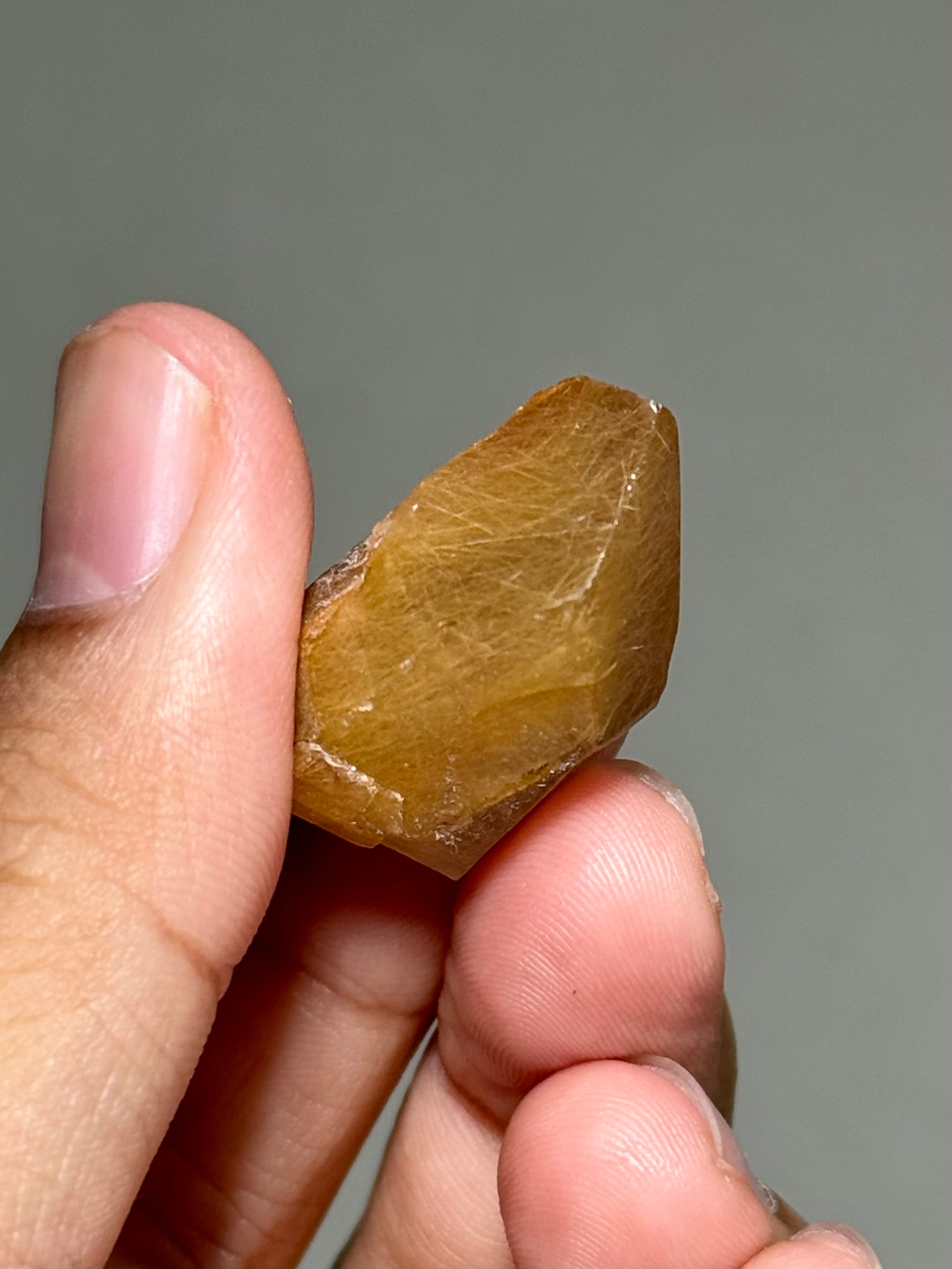 A small, semi-polished Himalayan quartz piece with rutile inclusions.
