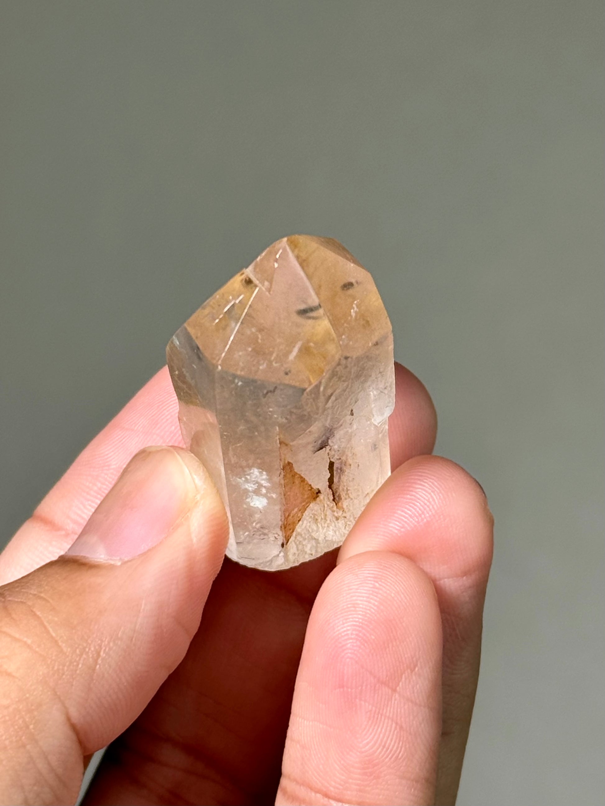 A small, semi-polished Himalayan quartz piece with rutile inclusions.