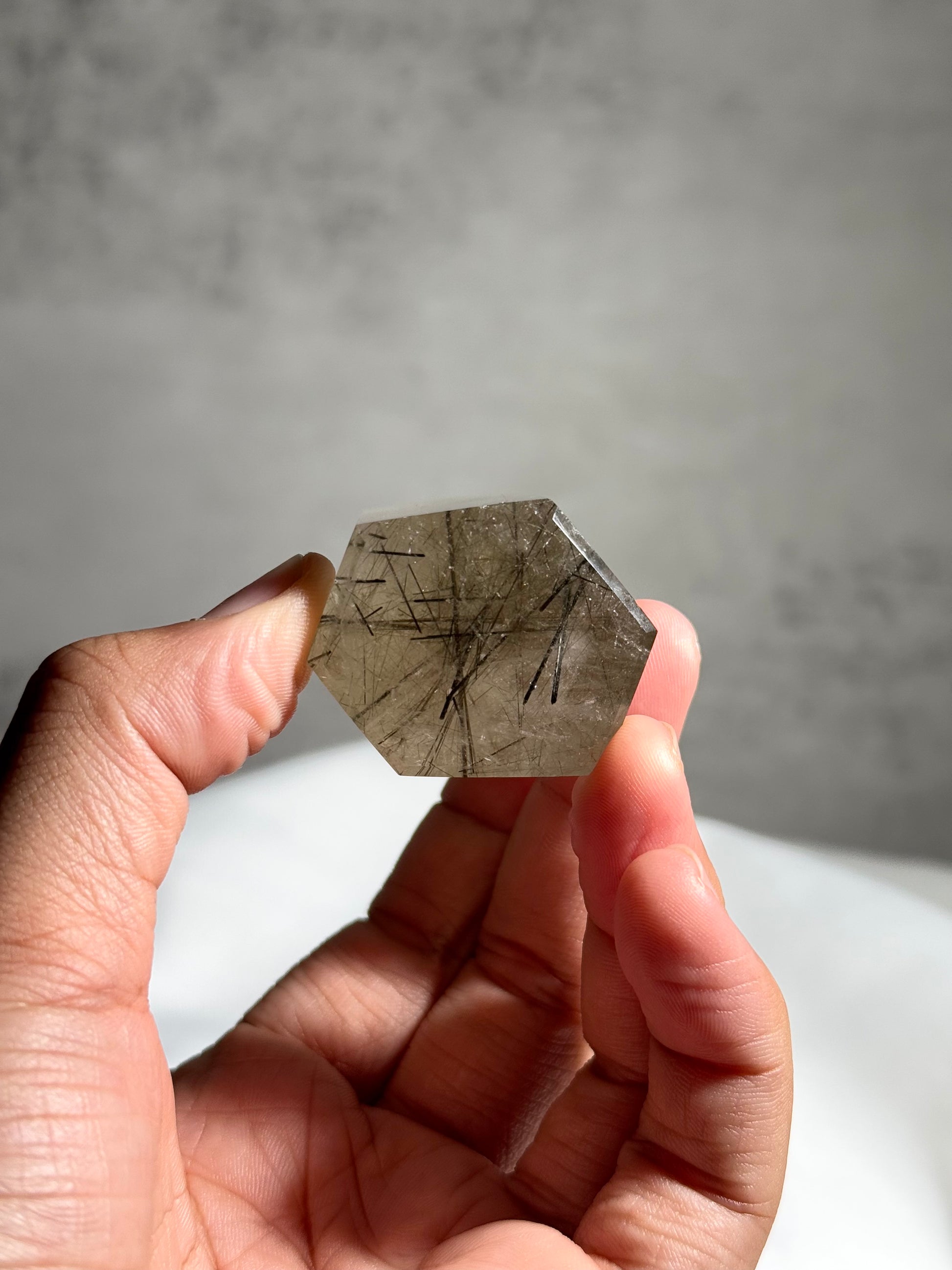 A polished citrine tower with tourmaline inclusions. I personally really loved the abundance x protection combination that these pieces represented metaphysically. They also have a "witchy" yet refined vibe to them, which was one of my hallmark traits as a shop owner when I first started two years ago.